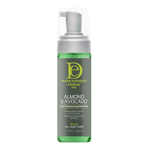 DESIGN ESSENTIALS Almond & Avocado Curl Enhancing Mousse is a must-have for all curl types. This lightweight non-greasy mousse formula dries quickly so you can say bye to frizz and hello to a style with beautiful sheen.